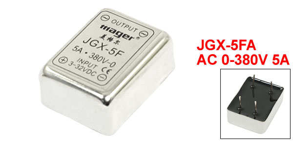 Product Name Solid State Relay Model JGX-5F Intput DC 3-32V Output AC 0-380V 5A Temperature -30~75C Size (Approx.) 33.5 x 15.5 x 14mm/1.3" x 0.65" x 0.57" (L*W*H)
