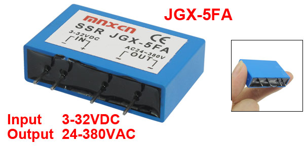 Product Name Solid State Relay Model JGX-5FA Input 3-32VDC Output 24-380VAC Frequency 50-60Hz Pin Diameter 1mm/0.04"