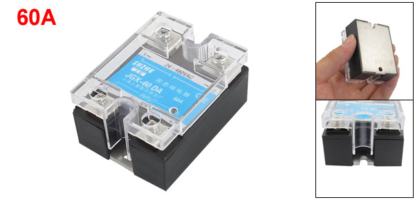 Product Name Solid State Relay Type JGX-60DA Material Metal, Plastic Rated Load Current 60A Input DC 3-32V Output AC 24-480V Mounting Hole Size Small Dia:4.5mm/0.2"