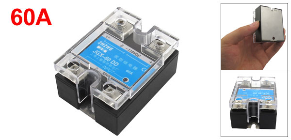 Product Name Solid State Relay Type JGX-60DD Material Metal, Plastic Rated Load Current 60A Input DC 3-32V Output DC 5-110V Mounting Hole Size Small Dia:4.5mm/0.2"