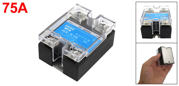 DetailsJGX-75VA 75A AC 24-480V Output Covered Adjustable Solid State Module Relay  Product Name Adjustable Solid State Module Relay Type JGX-75VA Material Metal, Plastic Rated Load Current 75A Load Voltage AC 24-480V Potentiometer Input Resistance 470-560KOhm(Potentiometer is not included) Input Power 2W Mounting Hole Size Small Dia:4.5mm/0.2" Big Size:6 x 4.3mm/0.24" x 0.2"(L*W) Total Size (Approx.) 5.8 x 4.4 x 3cm / 2.3" x 1.7" x 1.2" (L * W * H ) Color Black, Silver Tone Weight 93g Package Content 1 x Adjustable Solid State Module Relay