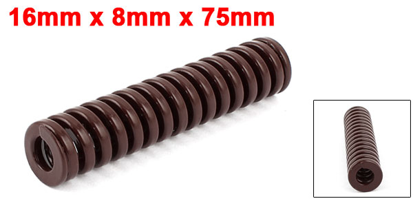 Product Name Die Spring Load Type Extra Heavy Load (TB) Color Brown End Type Closed Spiral Coil Type Rectangle Standard JIS B 5012 Hole Diameter 16mm/0.47" Rod Diameter 8mm/0.31" Free Length 75mm/2.95" Material Alloy Steel Weight 54g Package Content 1 x Die Spring - Reviews