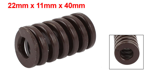 Product Name Die Spring Load Type Extra Heavy Load (TB) Color Brown End Type Closed Spiral Coil Type Rectangle Standard JIS B 5012 Hole Diameter 22mm/0.87" Rod Diameter 11mm/0.43" Free Length 40mm/1.57" Material Alloy Steel Weight 52g Package Content 1 x Die Spring - Reviews