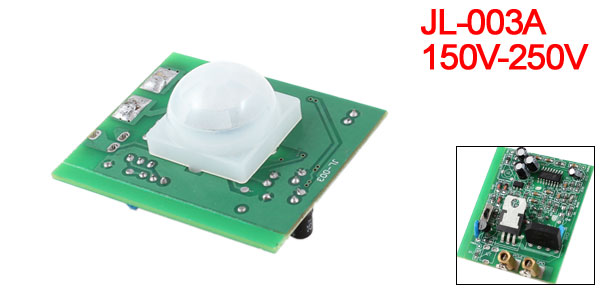 Product Name Motion Sensor Module Model JL-003A Working Voltage 150V-250V Load Power 3-200W Sensor Range 5-8M Time Range 20-30s Induction Lens Dia 23mm/0.9" PCB Size 50x 45mm/1.9" x 1.8"(L*W) Output Form Double Wire System Material Plastic, Electronic Part Color Green, White Net Weight 20g Package 1 x Motion Sensor Module - Reviews
