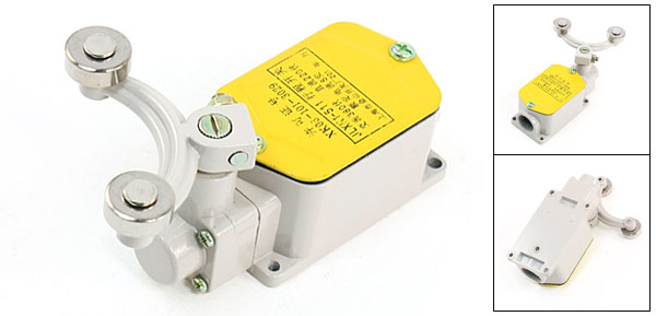 Product Name Limit Switch Model No. JLXK1-511 Contact Type 1NO,1NC(SPDT) Actuator Action Momentary Actuator Type Double Rotary Roller Lever Rated Operating Voltage (Ue) AC 380V DC 220V Rated Current 5A Fixing Hole Diameter 0.38cm / 0.15" Roller Diameter 1.8cm / 0.7" Total Size 13 x 4.3 x 3.7cm / 5.1'' x 1.7'' x 1.5'' (L*W*H) Material Metal Color Gray & Yellow Net Weight 222g Package Content 1 x Limit Switch - Reviews