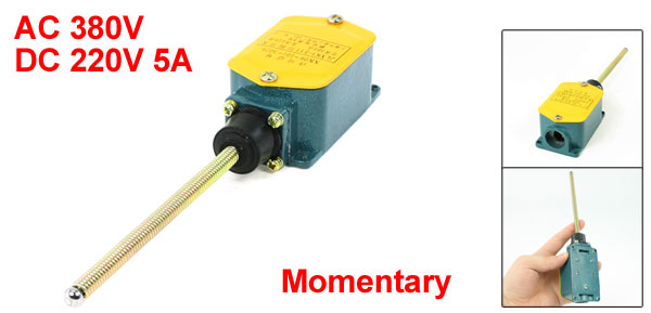Product Name Limit Switch Model No. JLXK1-511 Contact Configuration 1NO, 1NC(SPDT) Actuator Action Momentary Actuator Type Coil Spring Terminal Type Screw Terminals Voltage (Max) DC 380V AC 220V Rated Current 5A Coil Spring Size 10.1 x 0.65cm / 3.97 x 0.26"(L*D) Fixing Hole Dia 0.38cm / 0.15" Connector entry Dia 1.84cm / 0.72" Total Size 4.2 x 3.7 x 19.8cm / 1.65 x 1.46 x 7.8"(L*W*H) Material Metal & Rubber Color Steel Blue & Yellow Net Weight 125g Package Content 1 x Limit Switch - Reviews