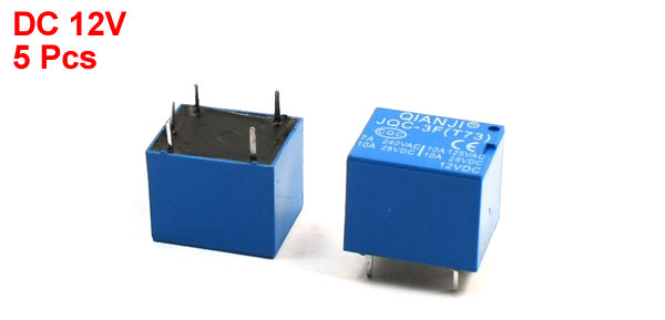 JQC-3F(T73) DC 12V Coil Voltage SPDT PCB Plug In Power Relay 5 Pcs