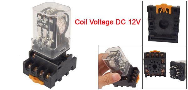 DetailsJQX-10F 12V DC Coil General Purpose Relay 3PDT 11 Pin w Socket Base  Product Name General Relay + Socket Model No. JQX-10F Coil Voltage DC 12V Contact Capacity 7.5A 250VAC 10A 30VDC Number of Pins 11 Overall Size (Approx.) 5.5 x 4.3 x 8.2cm/2.2" x 1.7" x 3.2" (L*W*H) Shell Material Plastic Main Color Black, Clear Weight 123g Package Content 1 x General Relay 1 x Socket