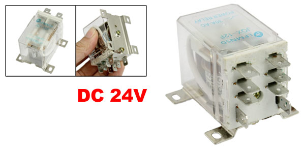 Product Name Power Relay Model JQX-12F Coil Voltage DC 24V Contact Capacity 30A, 250V AC/ 28V DC Contact Type 2 NP, 2NC, DPDT Mounting Hole 5 x 3mm/ 0.2" x 0.12" (L*W) Total Size(Approx.) 58 x 46 x 38mm / 2.3" x 1.8" x 1.5" (L*W*T) External Material Plastic, Metal Color Black, Clear Weight 93g Package Content 1 x Power Relay - Reviews
