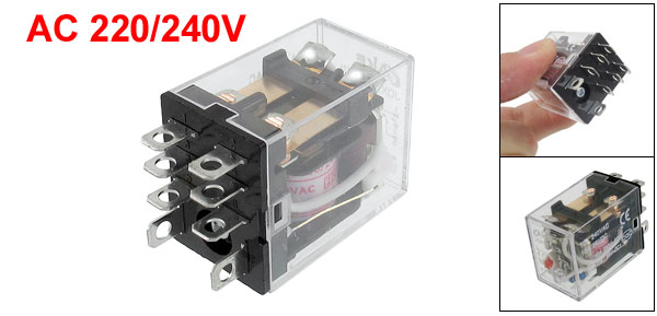 DetailsJQX-13F LY2 220/240VAC Coil Voltage 2P2T 8 Pins 10A Red LED Light Power Relay  Product Name Power Relay Model JQX-13F LY2 Contact Type 2P2T(2NO 2NC) Contact Capacity 10A 28VDC, 10A 240VAC Rated Coil Voltage 220/240VAC Pin Quantity 8 Total Size(Approx) 4.2 x 2.1 x 2.7cm / 1.66" x 0.82" x 1.07" (L*W*H) Weight 33g Package Content 1 x Power Relay
