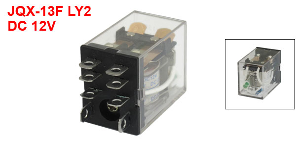 Product Name Electromagnetic Relay Model No. JQX-13F/LY2/HH62P Coil Voltage DC 12V Contact Capacity 10A 240VAC /28VDC Type DPDT Pin Quantities 8 Pin Size 6 x 5mm/0.24" x 0.2"(L*W) Overall Size (Approx.) 27 x 20 x 35mm/1.1" x 0.8" x 1.4"(L*W*H) Shell Material Plastic Main Color Clear, Black Net Weight 33g Package Content 1 x Electromagnetic Relay - Reviews