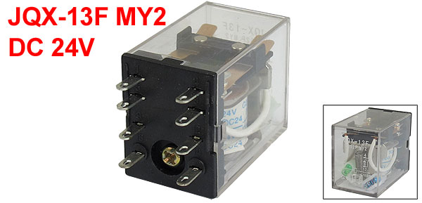 Product Name Electromagnetic Relay Model No. JQX-13F/MY2/HH52P Coil Voltage DC 24V Contact Capacity 5A 240VAC /28VDC Type DPDT Pin Quantities 8 Pin Size 6 x 2.6mm/0.24" x 0.1"(L*W) Overall Size (Approx.) 27 x 20 x 35mm/1.1" x 0.8" x 1.4"(L*W*H) Shell Material Plastic Main Color Clear, Black Net Weight 31g Package Content 1 x Electromagnetic Relay - Reviews