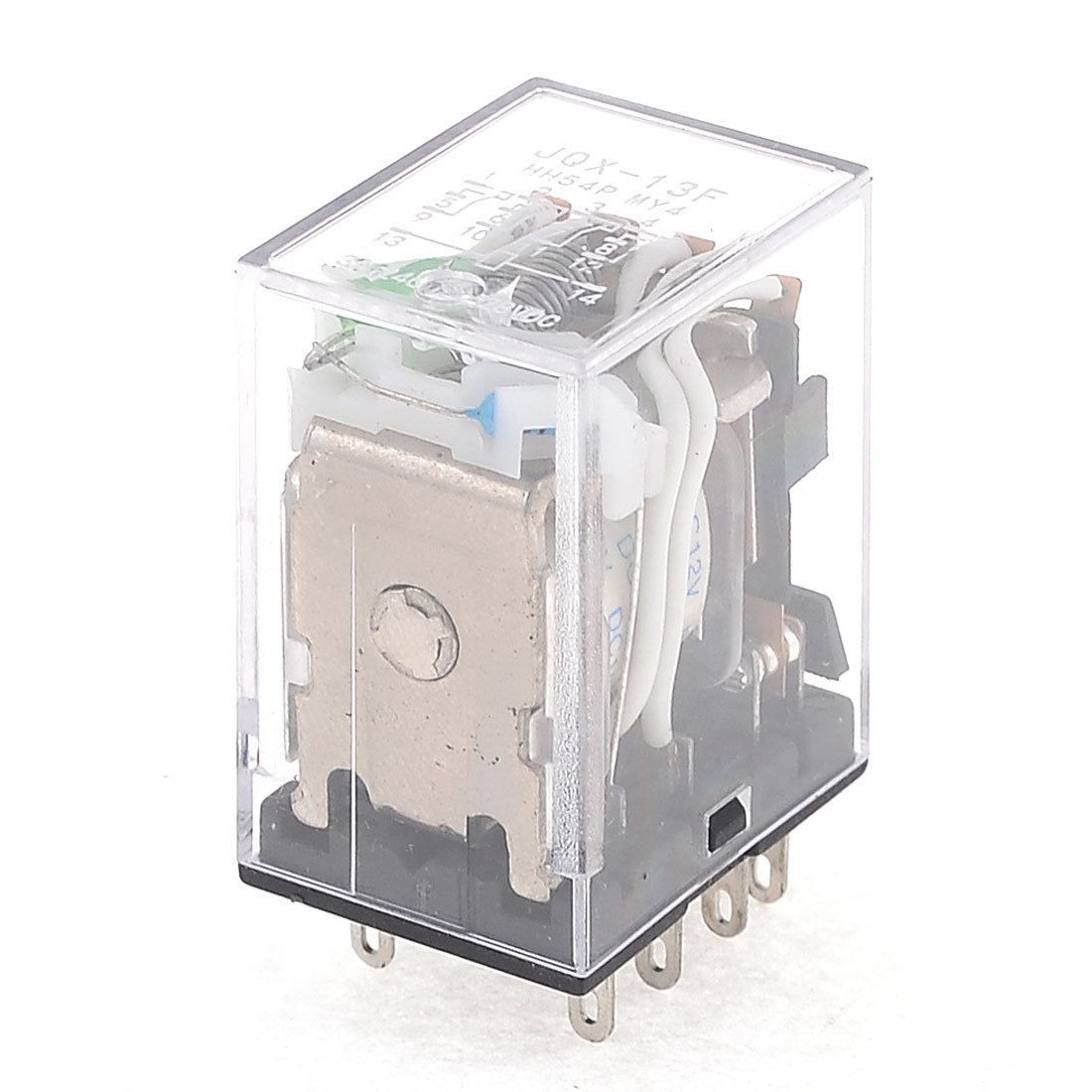 Product Name Electromagnetic Relay Model No. JQX-13F/MY4/HH54P Coil Voltage DC 12V Contact Capacity 5A 240VAC /28VDC Type 4PDT Pin Quantities 14 Pin Size 6 x 2.6mm/0.24" x 0.1"(L*W) Overall Size (Approx.) 27 x 20 x 35mm/1.1" x 0.8" x 1.4"(L*W*H) Shell Material Plastic Main Color Clear, Black Net Weight 32g Package Content 1 x Electromagnetic Relay  - Reviews