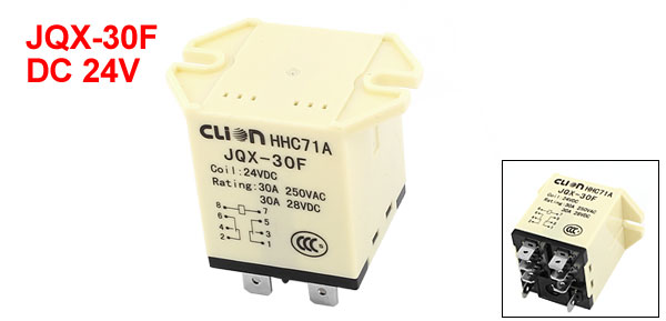Product Name Electromagnetic Relay Model No. JQX-30F Coil Voltage DC 24V Contact Capacity 30A AC 250V
