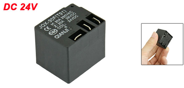 DetailsJQX-30F(T91) Coil DC 24V 4 Pin 30A 250VAC/ 20A 28VDC PCB Power Relay  Product Name Power Relay Model JQX-30F(T91) Coil Voltage DC 24V Contact 30A 250V AC 20A 28V DC Size (Approx.) 3.1 x 2.7 x 2.7cm / 1.2" x 1.1" x 1.1" (L * W * T) Material Plastic, Metal Color Black Weight 30g Package Content 1 x Power Relay