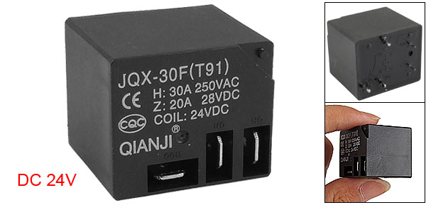 DetailsJQX-30F(T91) DC 24V Coil 5 Pin PCB Power Relay 30A 250V AC / 20A 28VDC  Product Name Power Relay Model JQX-30F(T91) Coil Voltage DC 24V Contact 30A 250V AC / 20A 28V DC Size (Approx.) 3.1 x 2.7 x 2.7cm / 1.2" x 1.1" x 1.1" (L * W * T) Material Plastic Color Black Weight 32g Package Content 1 x Power Relay
