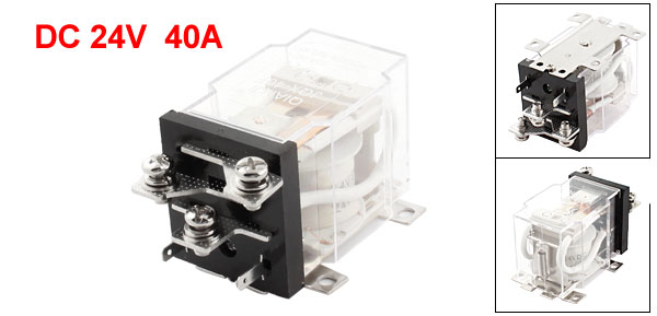 Product Name Power Relay Model JQX-40F Voltage DC 24V Contact Capacity 40A Mounting Hole Diameter 4.8mm / 0.18" Total Size(Approx.) 75 x 40 x 45mm / 3'' x 1.57'' x 1.8''(L*W*T) External Material Plastic, Metal Color Black, Clear Weight 155g Package Content 1 x Power Relay - Reviews