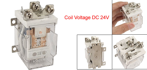 Product Name Power Relay Model JQX-40F Coil Voltage DC 24V Contact Capacity 40A, 250V AC/28V DC Total Size 4.5 x 4.5 x 7.8cm/1.8'' x 1.8'' x 3.1'' (L*W*T) External Material Plastic, Metal Color Black, Clear Weight 163g Package Content 1 x Power Relay - Reviews