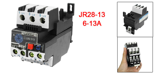 Product Name Thermal Overload Relay Model JR28-13 Rated Voltage AC 690V Rated Current 13A Setting Current 6-13A Ui 380V Ith 5A Total Size (Approx.) 7 x 4.3 x 9.5cm / 2.8" x 2.7" x 1.8" (L * W * H) Color Black, White Weight 205g Package Content 1 x Thermal Overload Relay - Reviews