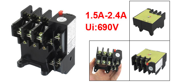 Product Name Thermal Overload Relay Model JR36-20 Thermal Contact 1 NO(97-98), 1 NC(95-96) Pole Number 3 Pole Thermal Relay Rated Current 2.4A Adjustable Current Range 1.5A-2.4A 97-98 0.47A 95-96 0.47A Ue(AC-15) 380V Ui (AC-15) 690V Ith 10A Material Plastic, Electronic Components Mounting Thread Size 5.6 x 4.1cm / 0.22" x 0.159" (L*W) Total Size (Approx) 7.1 x 4.7 x 7.9cm / 2.8" x 1.9" x 3.1" (L*W*H) Color Black, Yellow Net Weight 165g Package Content 1 x Thermal Overload Relay - Reviews