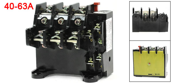 Product Name Thermal Overload Relay Model JR36-63 Contact Type 1NO 1NC Pole Number 3 Pole Thermal Relay Rated Current 63A Adjusting Current Range 40-63A Rated Insulation Voltage 690V Ui 380V