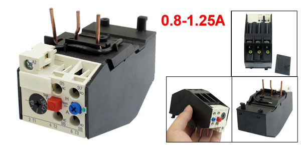 DetailsJRS2-12.5 1.25A 3 Pole Protection Thermal Overload Relay  Product Name Thermal Overload Relay Model JRS2-12.5 Thermal Relay Rated Current 1.25A Adjusting Current Range 0.8-1.25A Thermal Element Rated Current 1.25A Contact Type 1NO 1NC Number of Poles 3 Overall Size (Approx.) 102 x 45 x 70mm / 4" x 1.8" x 2.75" (L * W * T) Color Black Material Plastic, Electronic Components Net Weight 164g Package Content 1 x Thermal Overload Relay