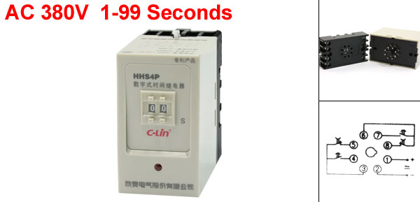JS14P 1-99s Second DPDT 2NO 2NC Programmable Time Delay Relay AC 380V