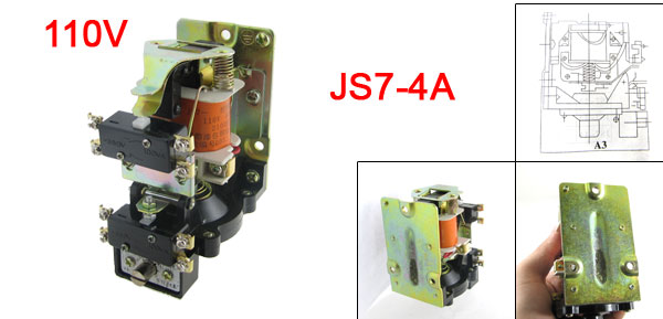 Product Name Time Relay Model JS7-4A Contact Type 1NO 1NC Time Delay Range 0.4-60S Coil Voltage 110V Frequency 50Hz Loaded Voltage AC 380V 100VA Install Hole Diameter Big: 4.75mm / 0.18" ; Small: 2.5mm / 0.098" Total Size (Approx.) 10.5 x 5.2 x 8.5cm / 4.1" x 2" x 3.3"(L * W * H) Weight 412g Package Content 1 x Time Relay - Reviews