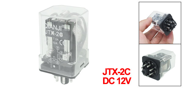 Product Name General Purpose Relay Model JTX-2C Coil Voltage DC 12V Contact Capacity AC 250V 7.5A, DC 30V 10A
