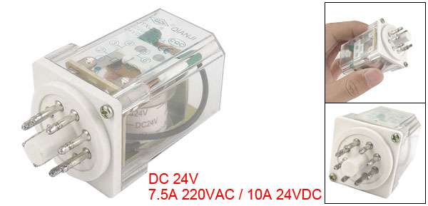 Product Name General Purpose Relay Model JTX-2C Coil Voltage DC 24V Contact Capacity 7.5A 220VAC 10A 24VDC Number of Pins 8 Size (Approx.) 3.3 x 3.3 x 6.7cm/1.3" x 1.3" x 2.6" (L*W*H) Shell Material Plastic Color As Picture Shown Weight 77g Package Content 1 x General Purpose Relay - Reviews