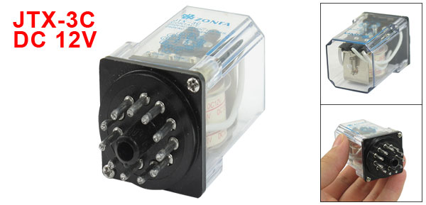 JTX-3C DC 12V Coil 11-Pin 3PDT 3NO 3NC Electromagnetic Relay