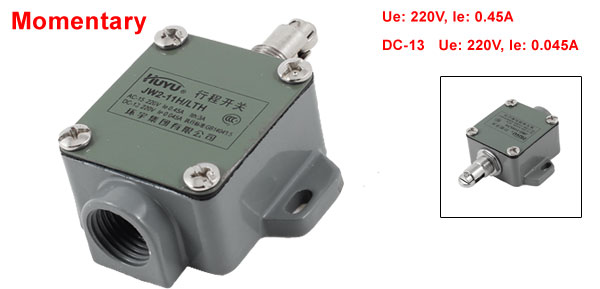 Product Name Limit Switch Model No. JW2-11H/LTH Actuator Action Momentary Actuator Type Parallel Roller Plunger Contact Type 1NC + 1NO(SPDT) Ith 3A AC-15 Ue: 220V, Ie: 0.45A DC-13 Ue: 220V, Ie: 0.045A Roller Wheel Size 10 x 3mm / 0.39" x 0.12"(Dia.*T) Total Size 80 x 58 x 23mm / 3.1" x 2.3" x 0.91"(L*W*T) Material Plastic , Metal Net Weight 81g Package Content 1 x Limit Switch