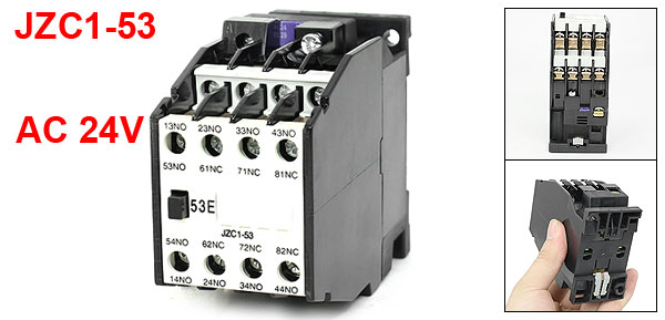 Product Name Contactor Type Relay Model Number JZC1-53 Material Plastic, Metal, Electrical Parts Rated Coil Voltage AC 24V 50Hz Ith 10A Ui 660V AC-15 360VA DC-13 33W Number of Contact 3P 5NO + 3NC Overall Size(Approx.) 7.5 x 4.4 x 9.6cm / 3'' x 1.7'' x 3.8''(L*W*H) Fix Mounted Hole Dismater 5mm/0.2" Mounted Type 35mm DIN Rail Main Color Black, White Net Weight 427g Package Content 1 x AC Contactor Type Relay - Reviews