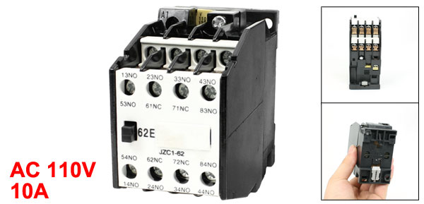 Product Name Contactor Type Relay Model Number JZC1-62 Material Plastic, Metal, Electrical Parts Rated Coil Voltage AC 110V 50Hz Ith 10A Ui 660V AC-15 450VA Rated Voltage(Ue)(V)