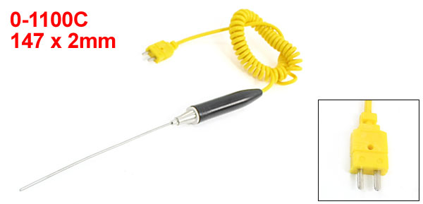 K Type 0-1100C Degree 147mm x 2mm Thermocouple Probe Temperature Sensor