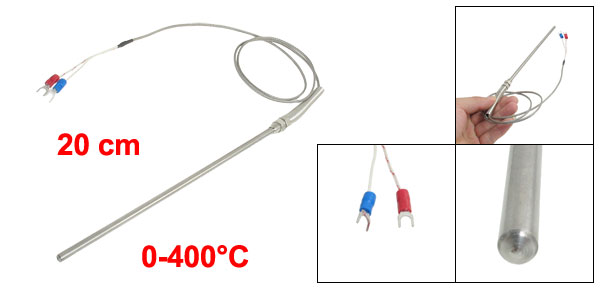 Product Name Thermocouple Transfer Type K Temperature Range 0-400°C Thread Diameter 7.8mm / 3.1" Probe Diameter 5mm/ 0.1" Fork Terminal Spacing 4mm / 0.16" Probe Length 200mm/ 7.8" External Shielding Metal Shield Total Length 0.63M / 2.1Ft Color Silver Tone Weight 40g Package Content 1 x Thermocouple - Reviews