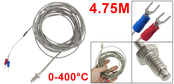 Product Name Thermocouple Transfer Type K Temperature Range 0-400°C Thread Diameter 6mm / 0.24" Fork Terminal Spacing 4mm / 0.16" Probe Length 3mm/ 0.11" External Shielding Metal Shield Total Length 4.75m/ 15.6Ft Color Silver Tone Weight 66g Package Content 1 x Thermocouple - Reviews