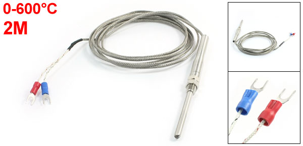 K Type 0-600C 7.5mm Thread Thermocouple Probe Temperature Sensor 2M Long