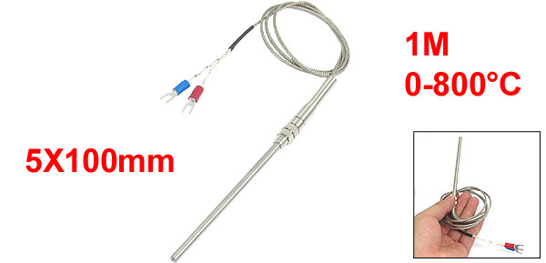 Product Name Thermocouple Transfer Type K Temperature Range 0-800C Thread Diameter 8mm / 3.1" Probe Diameter 5mm/ 0.1" Fork Terminal Spacing 4mm / 0.16" Probe Length 100mm/ 4" External Shielding Metal Shield Total Length 1m / 3.3Ft Color Silver Tone Weight 32g Package Content 1 x Thermocouple - Reviews