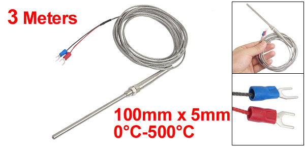 K Type 100mm x 5mm Temperature Controller Earth Thermocouple Probe 3 Meters