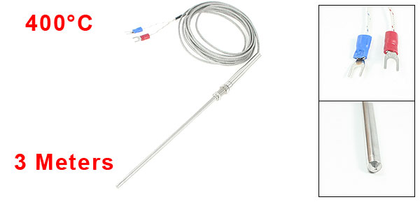 K Type 400C Thermocouple Temperature Measurement Sensor Probe 9.8Ft Length