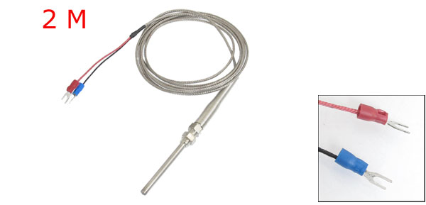K Type 5/16" Thread Dia 50mm x 5mm Thermocouple Probe 2M Cable