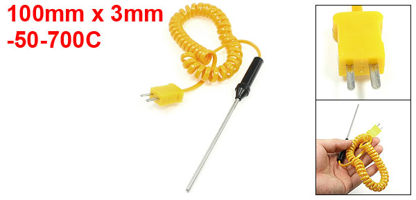 K Type -50-700C 100mm x 3mm Thermocouple Probe Temperature Sensor