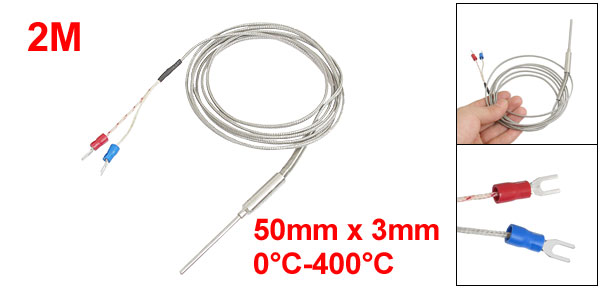 K Type 50mm x 3mm Temperature Controller Earth Thermocouple Probe 2M
