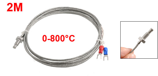 Product Name Thermocouple Transfer Type K Temperature Range 0-800°C Thread Diameter 5.4mm / 0.21" Fork Terminal Spacing 4mm / 0.16" Probe Length 3mm/ 0.12" External Shielding Metal Shield Total Length 2m/ 78.7" Color Silver Tone Weight 30g Package Content 1 x Thermocouple  - Reviews