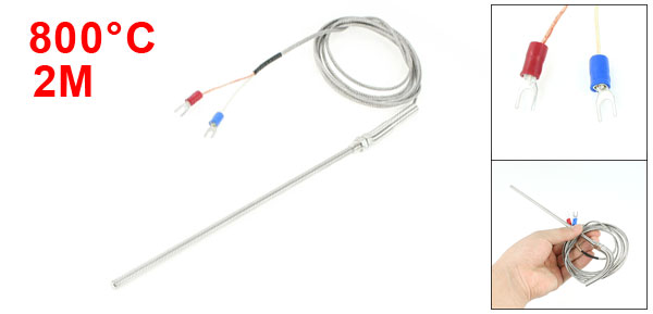 Product Name Thermocouple Type K Type Temperature Range 800°C(32-752°F) Probe Diameter 5mm / 0.2" Probe Length 20cm / 7.9" (Not Included Flexible Section) Thread Diameter 7.5mm / 0.3" Internal Insulation Fibreglass External Shielding Metal Shield Total Length 2M / 6.56ft Fork Terminal Spacing 4.3mm / 0.17" Color Silver Tone Weight 40g Package Content 1 x Type K Thermocouple - Reviews