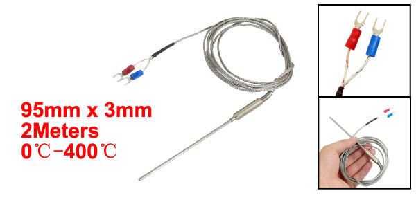 Product Name Thermocouple Transfer Type K Message Type Earth Temperature Range 0 to 400 Celsius Probe Size 95mm x 3mm / 3.7" x 0.12" (L*D) Wire Length 2M / 6.6Ft External Material Plastic, Metal Fork Terminal Quantity 2 Fork Terminal Spacing 3mm / 0.12" Color As Picture Shown Weight 36g Package Content 1 x Thermocouple - Reviews