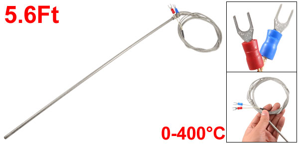 Product Name Thermocouple Transfer Type K Temperature Range 0-400C Thread Diameter 7.8mm / 0.3" Probe Length 40cm / 15.7" Probe Dia 5mm / 1/5" Fork Terminal Spacing 4.1mm / 0.16" Fork Terminal Size 10 x 6.4mm / 2/5" x 1/4"(L*W) External Shielding Metal Shield Total Length 1.71 / 5.6Ft Color Silver Tone Weight 60g Package Content 1 x Thermocouple - Reviews