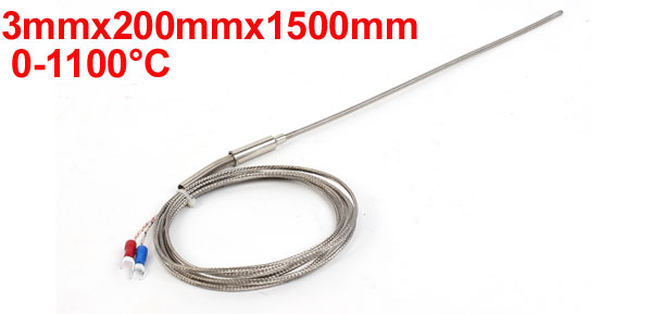 Product Name Thermocouple Transfer Type K Type Temperature Range 0-1100C Probe Diameter 3mm/ 0.12" Fork Terminal Spacing 4mm / 0.16" Probe Length 200mm/ 7.9" External Shielding Metal Shield Total Length 1.5m / 5Ft Color Silver Tone Weight 38g Package Content 1 x Thermocouple - Reviews