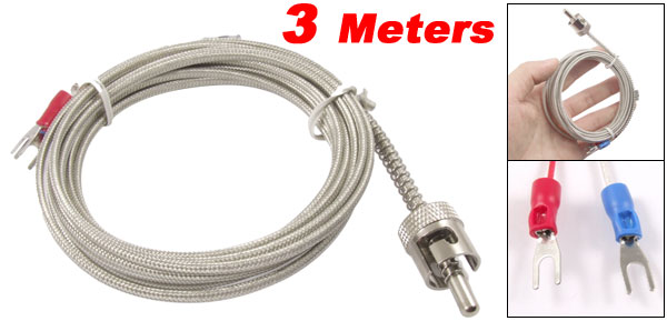 K Type Thermocouple Temperature Sensor Probe 3 Meters 118"